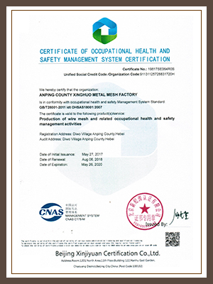 The wire mesh produced by this company was elected as regional top-quality product . We own four production lines and imported 20 machines. The annual output reaches 80,000 pieces, the products are sold all over the word, the annual sales exceed 5 million dollars.